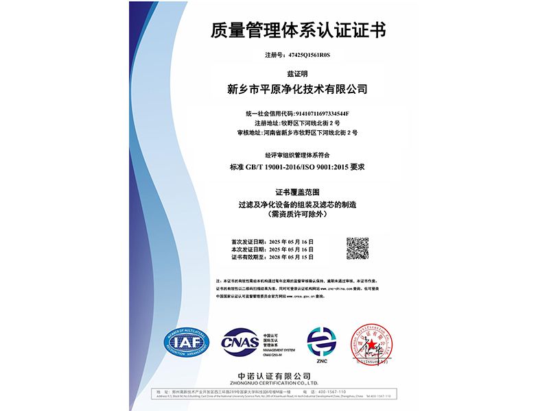 質(zhì)量管理體系認(rèn)證證書(shū)